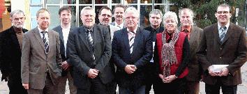 v.l.: Hans-Georg Katzmarzik (Schulleiter Eduard-Spranger-Berufskolleg Gelsenkirchen), Nikolaus Bley (DGB-Bildungswerk), Dr. Manfred Beck (Vorstand für Kultur, Bildung, Jugend und Sport der Stadt Gelsenkirchen), Bürgermeister Dr. Uli Paetzel, Ulrich Stromberg (Fachbereichsleiter Kultur, Bildung und Sport der Stadt Herten), Frank Senner (VHS-Leiter Herten), Dr. Beatrix Waldenhoff (Wissenschaftliche Mitarbeiterin), Dr. Josef Hülsdünker (DGB-Regionsvorsitzender).