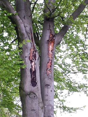 Im Bereich der Kronstädter Straße ist eine Rotbuche von einem Pilz befallen. Ein sogenannter Weißfäule-Erreger führt zu einer rasant abnehmenden Bruchsicherheit der Buche.