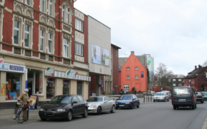 In der Ferne ist das Tabakhaus zu sehen. Doch nur aus luftiger Höhe, denn ebenerdig verhindert ein Meer von Rhododendron den Blick vom Herkulesplatz auf das Tabakhaus.