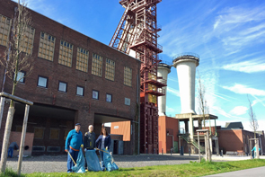v. li.: Jürgen Grunwald, 1. stellvertretender Bürgermeister, ZBH-Mitarbeiterin Heike Schulte-Knappmann, Bürgermeister Fred Toplak und Silvia Godde, 2. stellvertretende Bürgermeisterin freuen sich auf den anstehenden Putztag "Herten putzt sich raus".