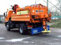 Bei der Kleinstkehrmaschine wirbelt ein dritter Besen den Dreck in einen Auffangbehälter hoch. Der Besen gleitet nur oberflächlich über den Asphalt, so wird das Fugenmaterial nicht entfernt.