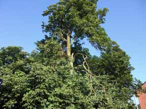 Neben der Stütze führen die städtischen Baumpfleger außerdem einen Pflegeschnitt durch. Der soll das Gewicht der Krone reduzieren.
