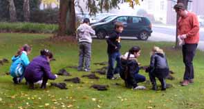 Um dem ZBH bei der Bepflanzung des Dorfangers Bertlich unter die Arme zu greifen, haben die Schülerinnen und Schüler der 4a der Barbaraschule insgesamt 500 Zwiebeln verbuddelt.
