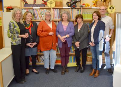 Stellten das Kleinkunstprogramm für den kommenden Herbst in den Büchereien an (v.l.): Gisela Wydra, Andrea Albrecht und Barbara Metzger (alle Förderverein Haus Letmathe) sowie die Leiterinnen der Büchereien Iserlohn und Letmathe, Gudrun Völcker und Rahel Horschak.