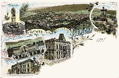 Lithografie "Gruss aus Iserlohn", um 1895. Die Ansichtspostkarte aus dem Verlag Leopold Cohen gehört zu den vom Stadtarchiv als Reproduktion herausgegebenen Iserlohn-Postkarten.