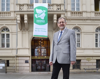 Bürgermeister Dr. Peter Paul Ahrens und seine Ehefrau Gabriele bei der Gedenkveranstaltung in der holländischen Partnerstadt Almelo.