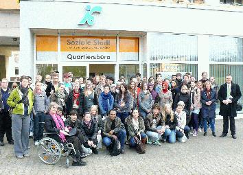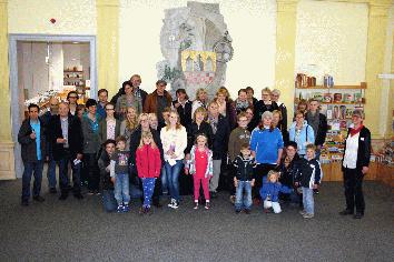 Bevor die erste Stadterkundung startete, wurde ein Erinnerungsfoto gemacht: vorne links sitzend Prof. Sigrun Dechêne, ganz rechts Olaf Pestl und Gabriele Bilke von der Stadt.