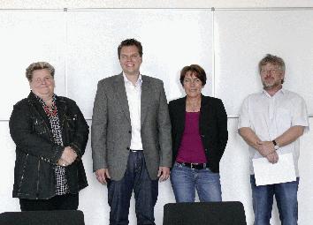 Bau-Ressortleiter Olaf Pestl und Projektleiterin Gabriele Bilke stellten die beiden Quartiersmanager beim städtischen Projekt Soziale Stadt, Stefan Peters und Tabea Rössig (2.u.3. v.l.), vor.