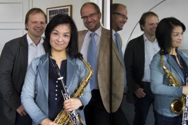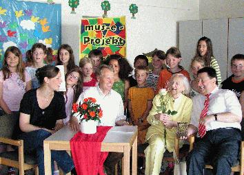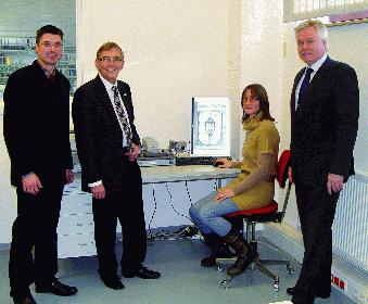 Bei der Übergabe waren anwesend: Ulla Vogt, Witwe des verstorbenen Besitzers Theodor Vogt (2.v.r.), ihr Sohn und jetziger Besitzer Joachim Vogt (rechts), Musikschulleiter Paul Breidenstein und Tone Johansen-Junius, Vorsitzende des Freundeskreises der Musikschule.
