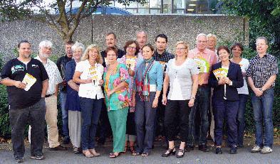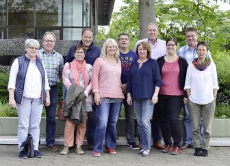 Der neue zuständige Abteilungsleiter Oliver Funke (l.) und Continue-Koordinatorin Nicole Behlau (r.) laden zusammen mit dem Continue-Kompetenzteam Norbert Humberg, Friedhelm Leppert, Dietmar Halbeisen, Dagmar Lenberg, Evelyn Oderbein und Inge Jeschak (v.l.) zum Aktionstag am 1. August vor dem Von-Scheibler-Haus ein.
