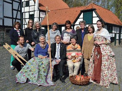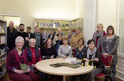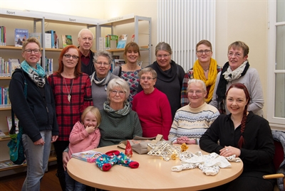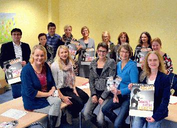 Laden zum 5. “Continue-Bücher-Trödel-Kreativ-Markt” ins Rathausfoyer ein (v.l.n.r.): Ute Tonat, Sonja Hellmann, Gertraud Burda, Volker Kohberg, Ulrike Stoewahs, Ursula Neesemann, Nicole Behlau, Hannelore Lohrmann, Edeltraud Neymann, Wilma Himmen, Brigitte Manthey-Radzuweit und Ingrid Schulte vom “Continue”-Team.