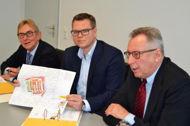 Sehr erfreut waren Vizebürgermeister Michael Scheffler, Bürgermeister Klaus Müller und Erster Beigeordneter Dr. Peter Paul Ahrens (v. li.) über die Förderbescheide, die Regierungspräsidentin Renate Drewke als "Gastgeschenk" dabei hatte.