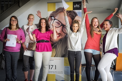 Bürgermeister und Kulturressortleiter Dr. Peter Paul Ahrens und VHS-Leiterin Lieselotte Berthold (4.u.2.v.r.) freuten sich mit dem gesamten VHS-Team über die erneute Zertifizierung.