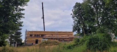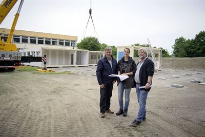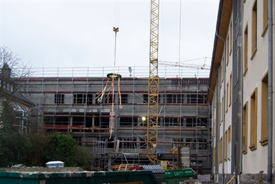 Im neu erstellten Anbau entstehen unter anderem eine Mensa samt Küche und eine Aula mit Bühnentechnik.