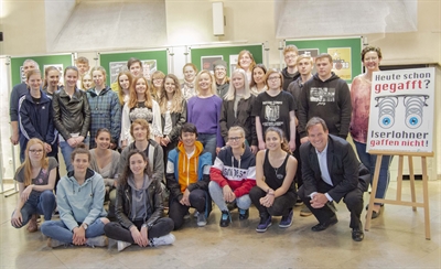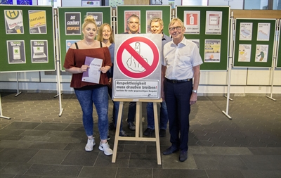 Bürgermeister Dr. Peter Paul Ahrens eröffnete die Plakatausstellung im Foyer des Iserlohner Rathauses (im Vordergrund die zwei Siegerplakate).