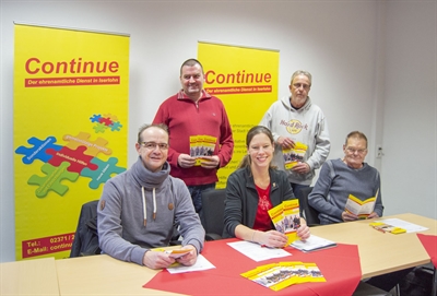 Ralf Stockebrand (Bildmitte) übergab im Kreise der ehrenamtlichen Continue-Mitarbeiter seine Zuständigkeit als Ressortbüroleiter an Helmut Paul.