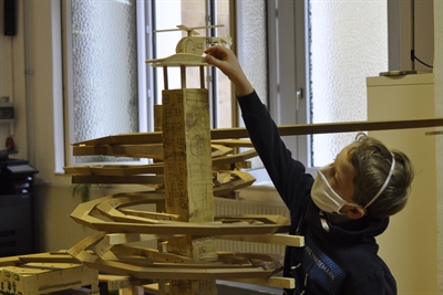 Bei der Vorstellung der Modelle durch die kleinen Baumeister hörten Bürgermeister Klaus Müller (li.) und Martin Bürger-Neumann aufmerksam zu.