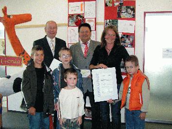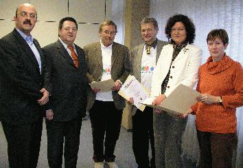 Die Sozialkampagne des DFB “Kinderträume 2011" unterstützt das Iserlohner Projekt “Ferien vor der Haustür”. Hans-Gerhard Schulz, Franz-Josef Bomnüter, Katrin Brenner, Petra Lamberts und Ralf Horstmann (v.l.) bei der Übergabe des Förderbetrages.