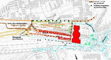 Die Baustelle für den Neubau des “Stadtbahnhofes Iserlohn” ist eingerichtet. Das Bauschild der Firma Freundlieb steht bereits.