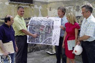 Gabriele Bilke, Leiterin des Bereiches Stadtplanung, Ressortleiter Mike Janke, Ulf Elsner vom Planungsbüro Pätzold + Snowadsky und Ingo Genster von der Abteilung Stadtentwicklung und Grünflächen der Stadt Iserlohn erläuterten die Bauabschnitte bei einem Pressetermin (v. li.).