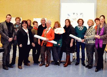 Dozenten und Teilnehmerinnen des Qualifizierungslehrganges der VHS Iserlohn bei der Übergabe des “Tagesmutter-Passes” Fotonachweis: Stadt Iserlohn
