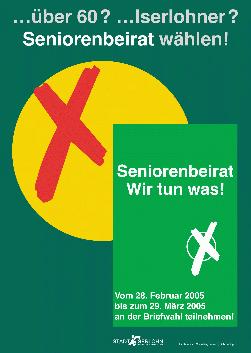 Die Vorsitzende des amtierenden Seniorenbeirates Eva Kingreen und Bürgermeister Klaus Müller stellten im Iserlohner Rathaus auch ein Plakat zum Wahlaufruf für die Seniorenbeiratswahl 2005 vor