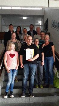 v. l.: Bürgermeister Michael Joithe, Nicole Steiger (2. Platz), Daniela Bischof-Kreutzer, Toby Köhl (1. Platz), Jörg Simon, Milena Leschnik (3. Platz), Niels von Pidoll und Bianca Braunschweig