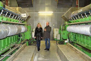 Katrin Brenner und Heiner Steingrefer vom Kommunalen Immobilien Management der Stadt Iserlohn lassen sich die Tiefenbohrung für die Erdsondenanlage erläutern.