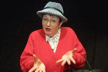 Kabarettistin Ulrike Böhmer alias Erna Schabiewsky unterhält die Gäste der Iserlohner Feier zum Internationalen Frauentag.