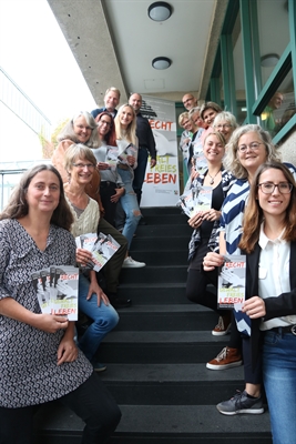 Der neue zuständige Abteilungsleiter Oliver Funke (l.) und Continue-Koordinatorin Nicole Behlau (r.) laden zusammen mit dem Continue-Kompetenzteam Norbert Humberg, Friedhelm Leppert, Dietmar Halbeisen, Dagmar Lenberg, Evelyn Oderbein und Inge Jeschak (v.l.) zum Aktionstag am 1. August vor dem Von-Scheibler-Haus ein.