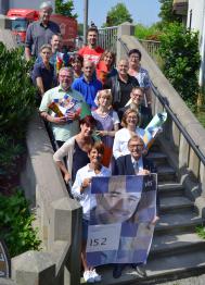 Der neue zuständige Abteilungsleiter Oliver Funke (l.) und Continue-Koordinatorin Nicole Behlau (r.) laden zusammen mit dem Continue-Kompetenzteam Norbert Humberg, Friedhelm Leppert, Dietmar Halbeisen, Dagmar Lenberg, Evelyn Oderbein und Inge Jeschak (v.l.) zum Aktionstag am 1. August vor dem Von-Scheibler-Haus ein.