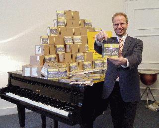 Musikschulleiter Paul Breidenstein freut sich, dass er die Video-DVD vom Stiftungsfest der Musikschule noch rechtzeitig zu Weihnachten an die jungen Mitwirkenden übergeben kann. Fotonachweis: Stadt Iserlohn