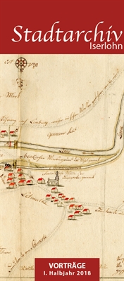 Plakat und Faltblatt zur Vortragsreihe zeigen einen Ausschnitt aus einer Karte von Letmathe und Genna, gezeichnet von D. H. Ahmer, Königlich-Preußischer Feldmesser, für den Bau von Brücken, 1776 (Stadtarchiv Iserlohn, Kartensammlung).