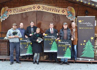 Bürgermeister Klaus Müller (Mitte)eröffnete u.a. im Beisein von Ideengeber Wolfgang Eckenbach (rechts) und den "Schutzengeln" der Weihnachtsjurten das Kinderweihnachtsdorf