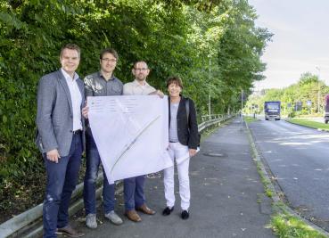 Kündigten den Beginn der Arbeiten im Rahmen eines Pressetermines an: Stadtbaurat Mike-Sebastian Janke, Stefan Thiemann, Leiter der Abteilung Straßen und Brücken, Thorsten Grote, Leiter der Abteilung Stadtentwicklung, und Medienreferentin Christine Schulte-Hofmann (v. li.).