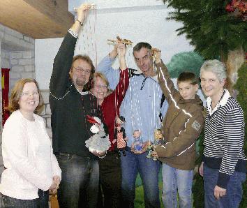 Büchereileiterin Christa Volkmann (r.) und Mitarbeiterin Katrin Fischer (l.) stellten gemeinsam mit Puppenspielern des Markenfelder Marionetten-Theaters das Büchereiprogramm für den Letmather Weihnachtsmarkt vor.