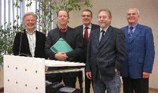 Stellten das Programm der Iserlohner "Winteruni 2009" vor (v.l.n.r.): Bodo Mebes, Volkshochschule Iserlohn, Volker Cznottka, Büro f. Stadtentwicklungsplanung, Katja Schmidt-Rodehüser, Institut für Bildung, Bürgermeister Klaus Müller und Dr. Martin Büscher, Ev. Akademie.