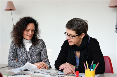 Künstlerin Christiane Bisplinghoff (l.) und Gleichstellungsbeauftragte Judith Mühlenhoff laden ein zum Workshop in der Kunstfabrik casa b.