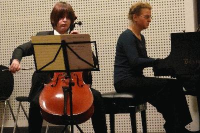 Dirk Denzer und Michael C Schmitt begeistern am 24. Oktober mit einer Leuchtjonglage mit Gitarre und Violine im Josephsaal des Klosters Bronnbach. Foto: Dirk Denzer