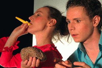 Die Schauspielerin Kathrin Berg in einer Szene aus "Cyrano von Bergerac" gemeinsam mit Schauspielkollege Wolf E. Rahlfs, Foto: Sonja Ramm