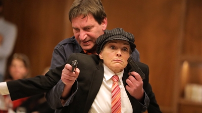 Die Badische Landesbühne spielt am 15. Januar in der Aula Alte Steige den Politthriller „Komplize“. Foto: BLB/Sonja Ramm