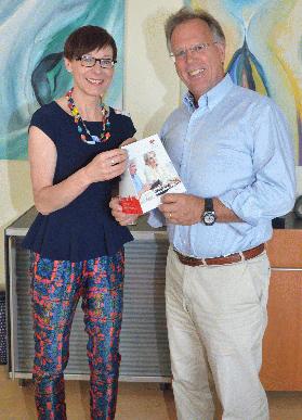 Sozialdezernentin Elisabeth Krug übergab ein erstes Exemplar der neuen Broschüre „Grundsicherung im Alter und bei Erwerbsminderung“ an Landrat Reinhard Frank. Foto: Landratsamt Main-Tauber-Kreis