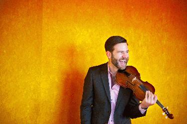 Dirk Denzer und Michael C Schmitt begeistern am 24. Oktober mit einer Leuchtjonglage mit Gitarre und Violine im Josephsaal des Klosters Bronnbach. Foto: Dirk Denzer