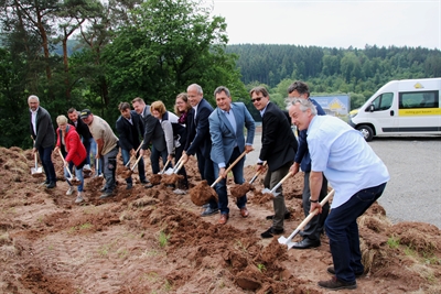 Firma alfi GmbH, von links nach rechts: Geschäftsführer der alfi GmbH, Hubert Sauter, Oberbürgermeister Stefan Mikulicz, Bundestagsabgeordneter Alois Gerig und Geschäftsführer der alfi GmbH, Bernhard Mittelmann