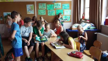 Nassiger Grundschüler der beiden 4. Klassen durften schon mal in den Büchern des Ferienleseclubs schnuppern. Foto: Stadtbücherei Wertheim