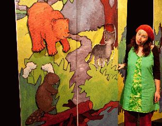 Das Kindertheater Tom Teuer spielt auf Einladung der Stadtbücherei das Stück“ Wie die Buchstaben entstanden.“ Foto: Theater Tom Teuer