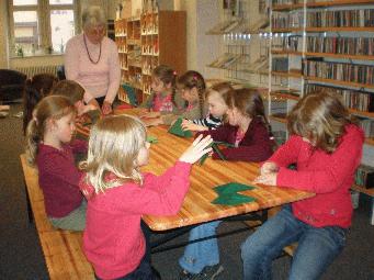 Nassiger Grundschüler der beiden 4. Klassen durften schon mal in den Büchern des Ferienleseclubs schnuppern. Foto: Stadtbücherei Wertheim