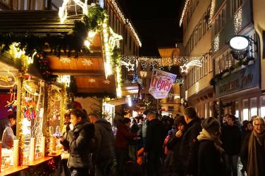 Die festlich beleuchtete Innenstadt schafft den besonderen Rahmen für den Wertheimer Weihnachtsmarkt. Foto: Stadt Wertheim