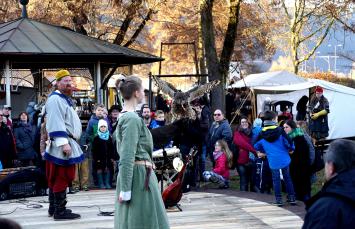 Auf dem Mittelaltermarkt am Mainplatz tummeln sich Gaukler, Barden, Falkner und Feuerschlucker. Archivfoto: Stadt Wertheim