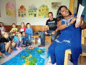 Auch die Kinder in der Kita Dörlesberg folgten der besonderen Vorlesestunde gespannt. Foto: Stadtbücherei Wertheim